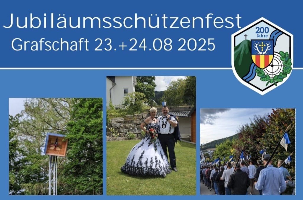 - Schützenfest 2025 – Bewährtes mit neuen AkzentenDas Schützenfest feiern wir in diesem Jahr am Samstag, 12.07. bis Montag, 14.07.2025. Alle Grafschafterinnen und Grafschafter sowie Gäste, Freunde und Bekannte aus den umliegenden Ortschaften sind herzlich willkommen. Wir freuen uns auf ein tolles und harmonisches Fest für Jung und Alt. Nach den sehr guten Rückmeldungen im vorherigen Jahr werden im Speisesaal wieder leckere… Schützenfest 2025 – Bewährtes mit neuen Akzenten weiterlesen
