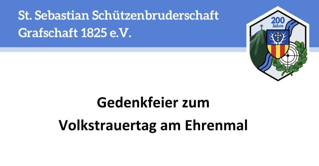 Die Schützenbruderschaft lädt ein zur Gedenkfeier zum Volkstrauertag. Abweichend zur Angabe im Dorfkalender findet die Feier bereits am Samstag, 15.11.2025 im Anschluss an die um 17.00 Uhr beginnende Abendmesse statt. Die Schützenbrüder treten mit Schützenhut vor der Pfarrkirche an. Alle Grafschafterinnen und Grafschafter sowie Gäste des Dorfes sind herzlich eingeladen. - Ein Abend unter Majestäten mit kaiserlichem Wildschmaus