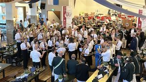 Im Anschluss erfolgten in der Schützenhalle die Ansprachen des 1. Brudermeisters und der geladenen Ehrengäste und Gratulanten. Ein besonderen Moment bescherte das Tambourkorps, das das von der Bruderschaft geschenkte Musikstück in der Schützenhalle uraufführte und zumindest bei den Grafschaftern Lust zum Mitsingen und auf Geyseke aufkommen ließ. Auch im Zelt, was auf dem Schützenplatz aufgebaut war, herrschte eine tolle Stimmung.