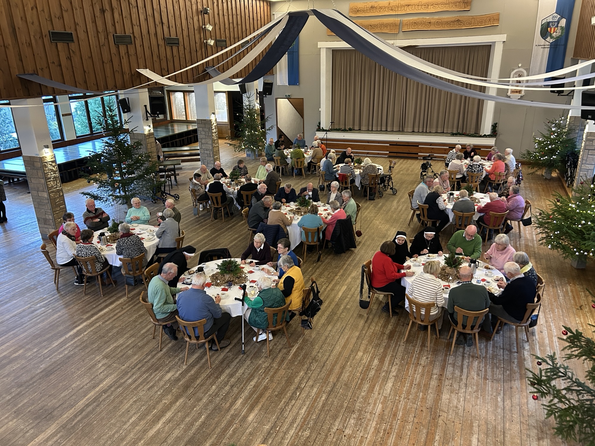 Zum 33. Adventskaffee hatte die Schützenbruderschaft am ersten Adventssonntag in die vorweihnachtlich dekorierte Schützenhalle eingeladen. Etwa 80 Seniorinnen und Senioren, einige Schwestern des Klosters sowie Pastor Stipp, Vikar Jaison und die amtierenden Majestäten waren der Einladung gefolgt. Die von den Vorstandsfrauen gebackenen Torten und Kuchen nahmen reißenden Absatz und bei Kaffee oder Tee wurde sich ausgetauscht und rege geplaudert.